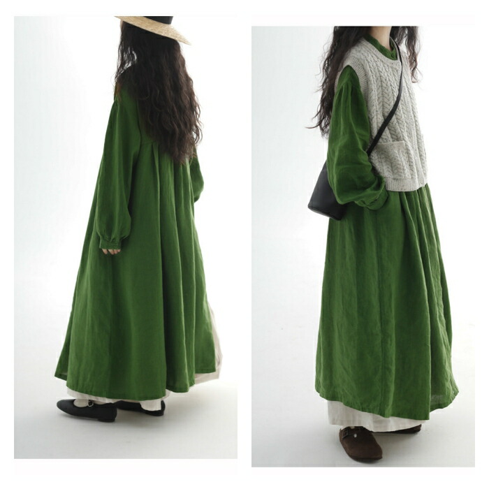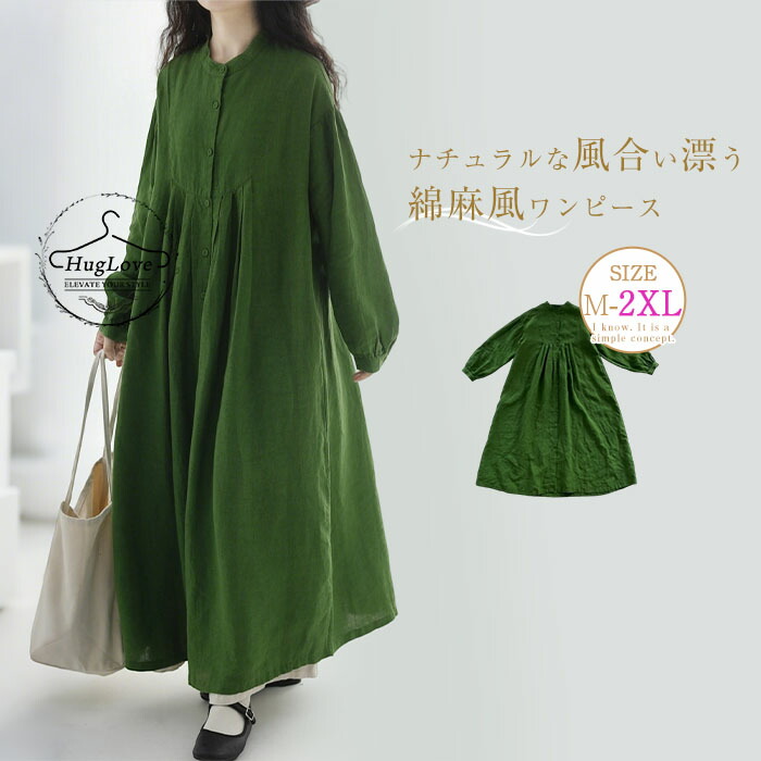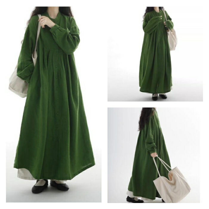 春夏 ロングワンピース レディース 長 グリーン ネイビー★新色 M L XL 2XL