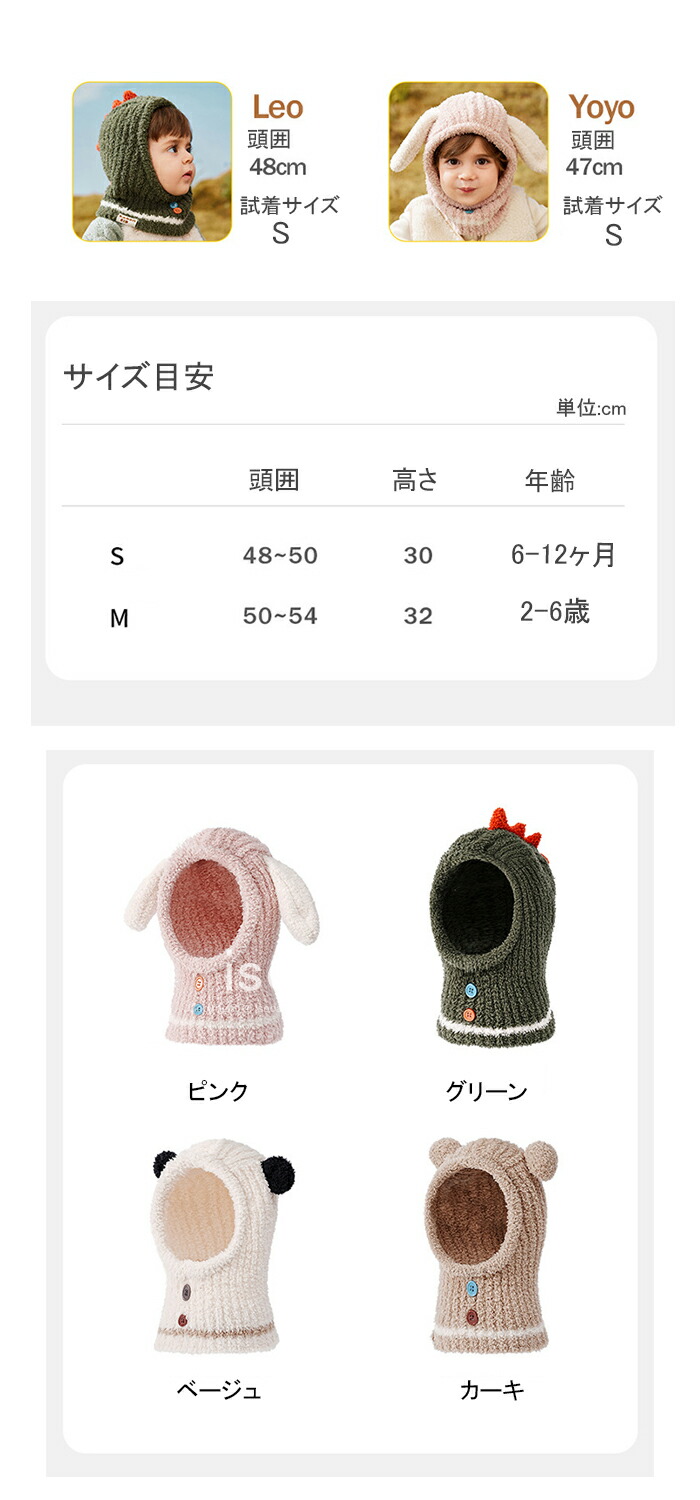 キッズ 帽子 マフラー 一体 子ども キッズ 帽子 その他 人気 ベージュ ピンク カーキ グリーン S(48-50cm) M(50-54cm)