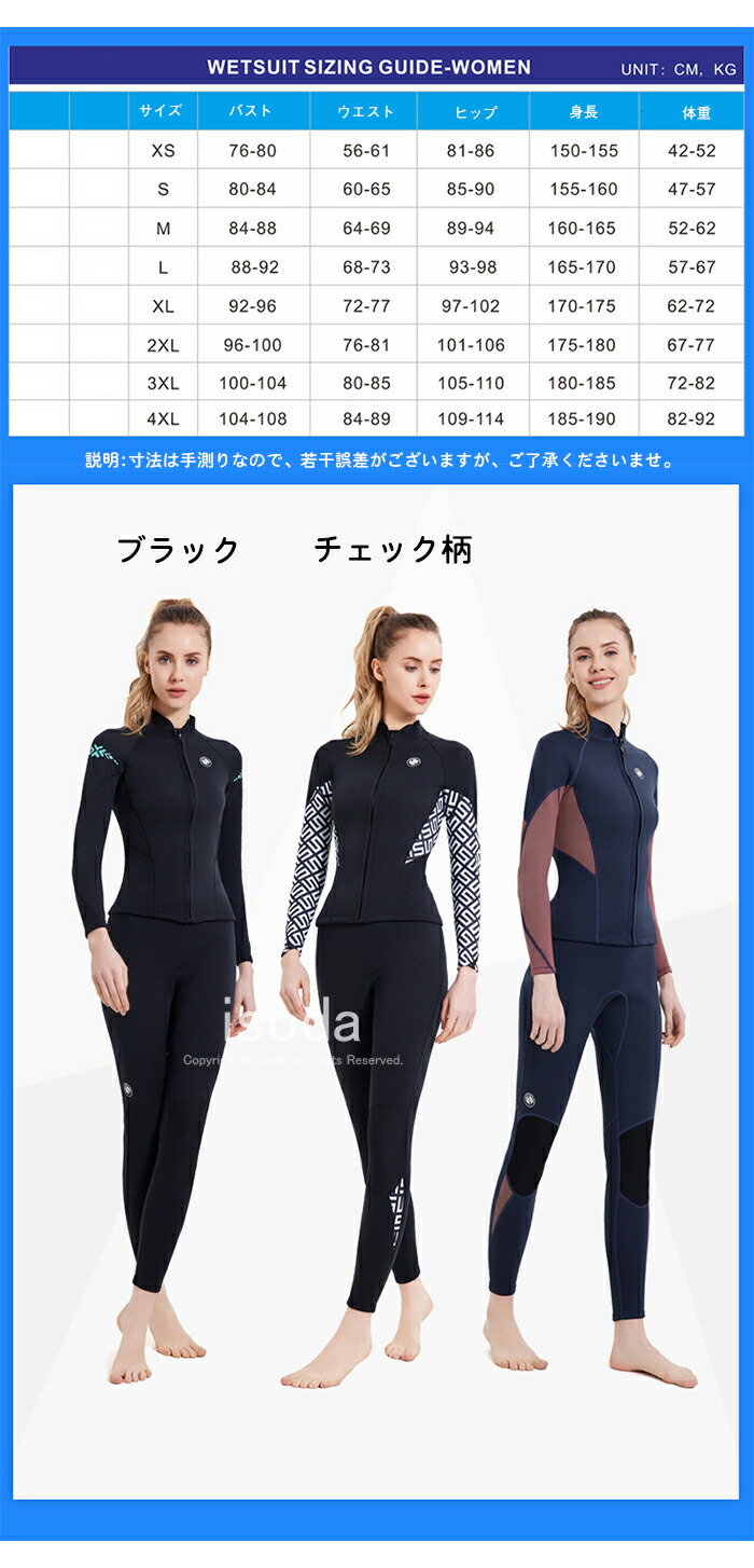 2mm ウェットスーツ レディース ロ スポーツ アウトドア 続々登場 ブラック チェック柄 トップス ズボン