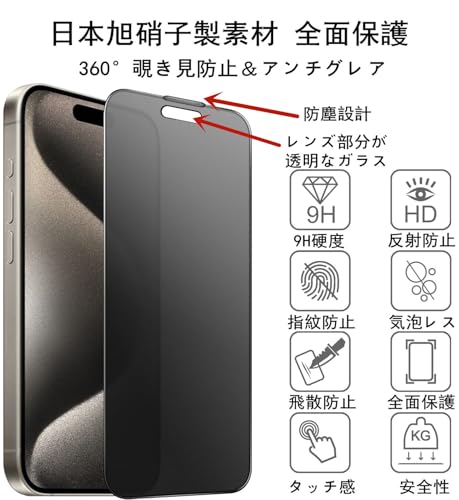 360 覗き見防止 アンチグレア アイフォン 17 Pro 用ガラスフィルム ガラスフィルム 上下左右 プライバシー保護 日本旭 さらさら感