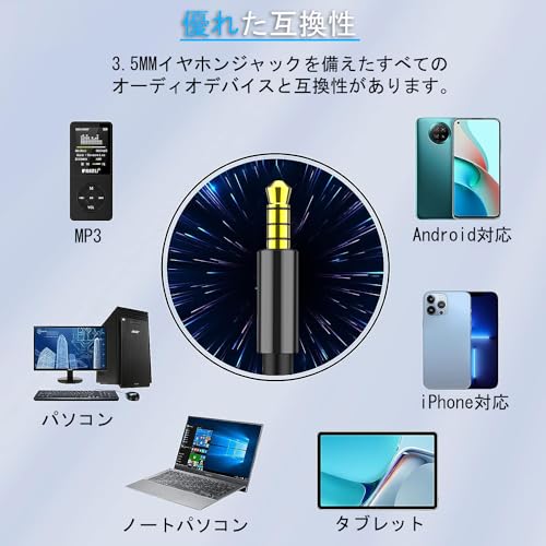標準な3.5ミリメートルのメッキプラグを採用し、対応 ios / Android / Windows / MP3 / Samsung Galaxy / Galaxy Note、Sony Xperiaなどのスマホ、switch 、PS4 、PCなど各種対応しています。