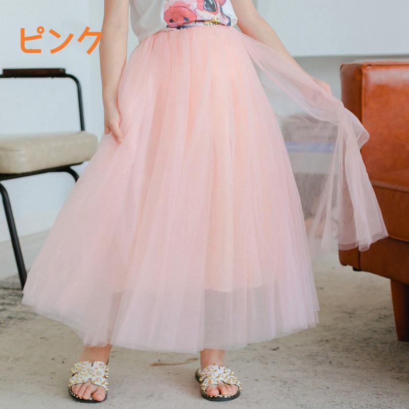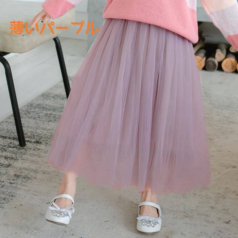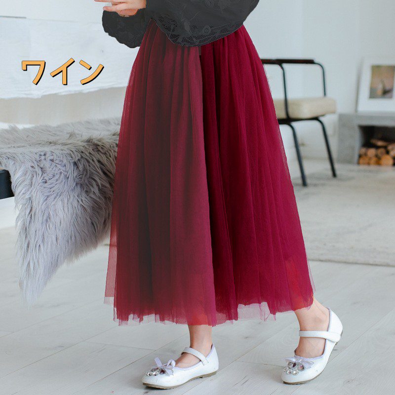ふんわりチュールスカート 全8色 女の キッズ ボトムス スカート 豊富な品揃え グレー ブラック ホワイト ベージュ ワイン ピンク バーブル 薄いバーブル 100cm 110cm 120cm 130cm 140cm 150cm 160cm