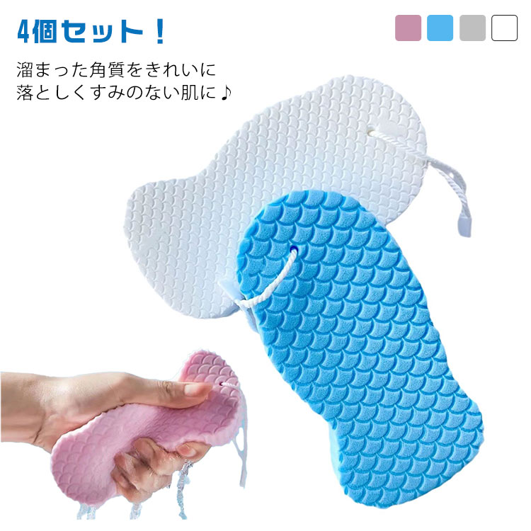 4個セット 垢すりスポンジ 角質除去 バス用品 ボディスポンジ 豊富