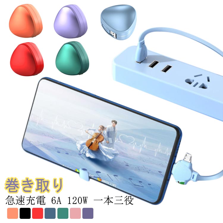 スマホ 用 スマホケーブル 120W スタンド ケーブル 6A 充電ケーブル 巻き取り 急速充電 携帯便利 USB ライトニングケーブル iPhone Andro lightningケーブル