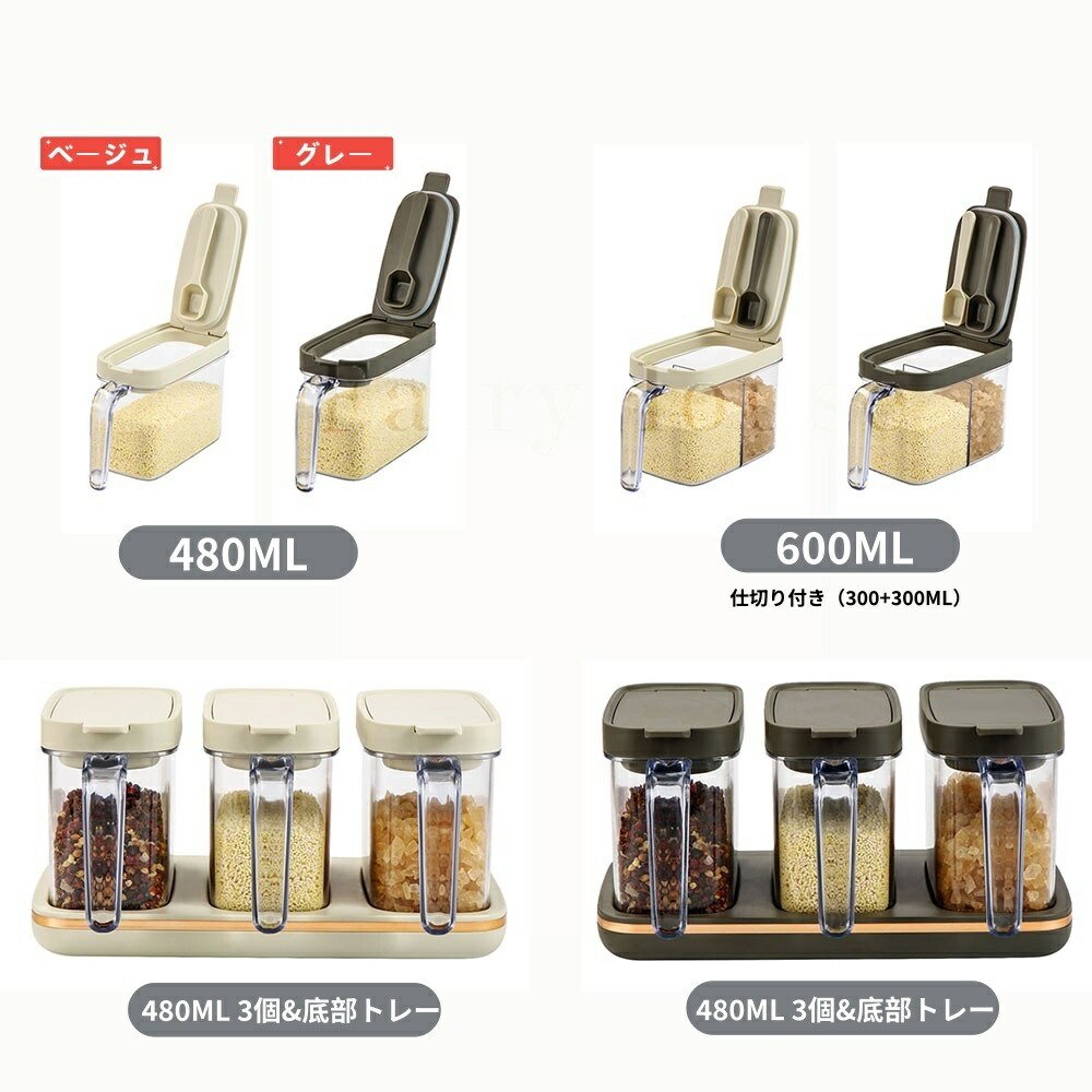 調味料ポット スプーン マグネット 密 キッチン用品 食器 調理器具 豊富 ベージュ(480ML)*1個 グレー(480ML)*1個 ベージュ(600ML)*1個 グレー(600ML)*1個 ベージュ(480ML)*2個 グレー(480ML)*2個 ベージュ+グレー(480ML) ベージュ(600ML)*2個 グレー(600ML)*2個 ベージュ+グレー(600ML) ベージュ (480ML*3個&底部トレー) グレー (480ML*3個&底部トレー)