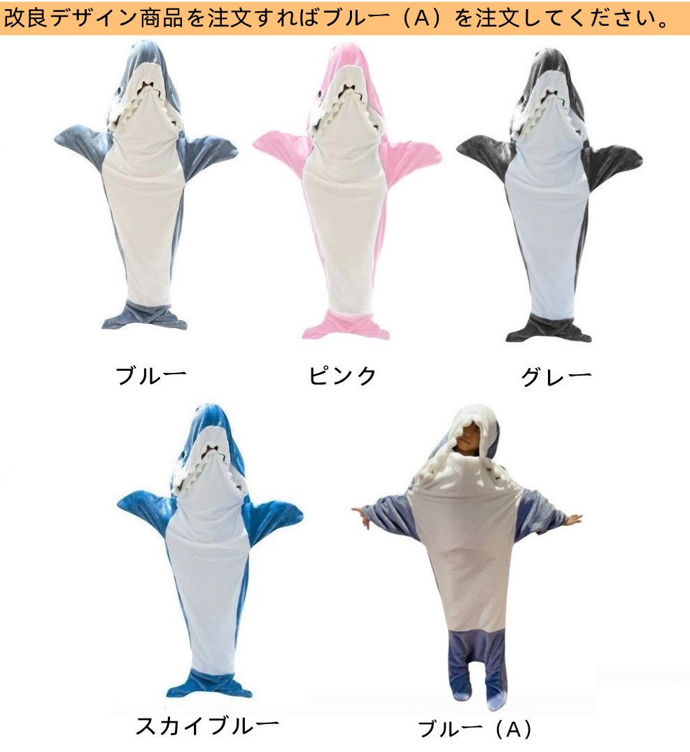 サメブランケット サメ 着る毛布 寝袋 コスプレ 変装 仮装 着ぐるみ 新作 ブルーA(改良版) ピンク