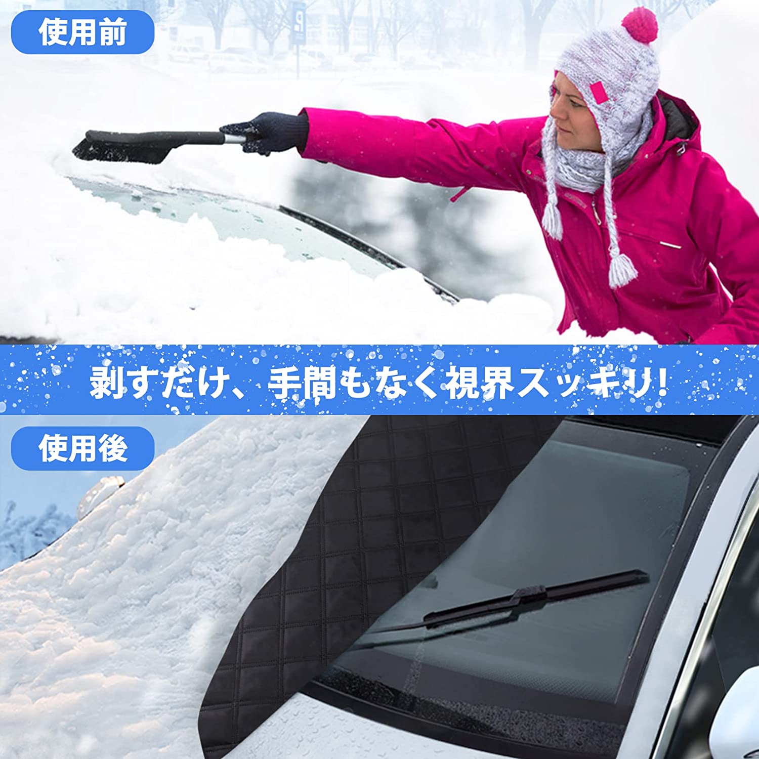 フロントカバー 2way仕様 フロントガラス フロントガラスカバー 日よけ 日除け 紫外線 uv 断熱 遮光 夏 冬 凍結防止 雪 結露 対策 防水 霜除け 強力磁石防風 厚手 軽自動 車サンシェード