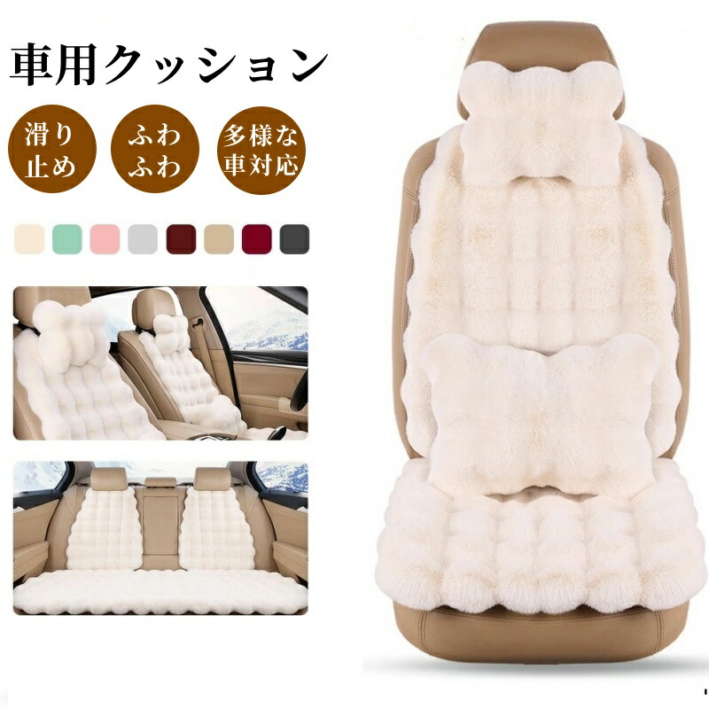 ふわふわ カークッション 車の座布団 ホワイト ブルーグレー コーヒー ピンク グリーン ベージュ ブラック ボルドー 2点セット 3点セット 4点セット