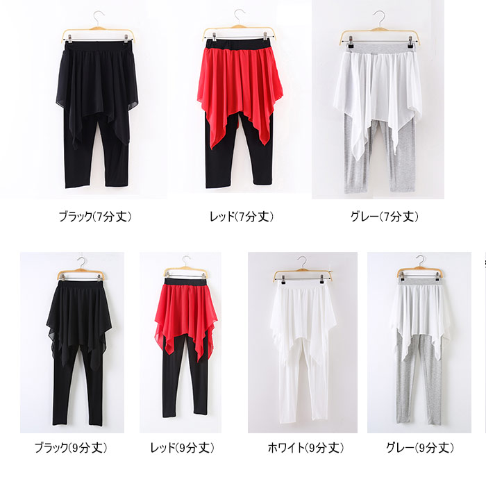 ダンス パンツ スカート付き レギンス ブラック(9分丈) レッド(9分丈) ホワイト(9分丈) グレー(9分丈) ブラック(7分丈) レッド(7分丈) グレー(7分丈) S M L XL 2XL 3XL
