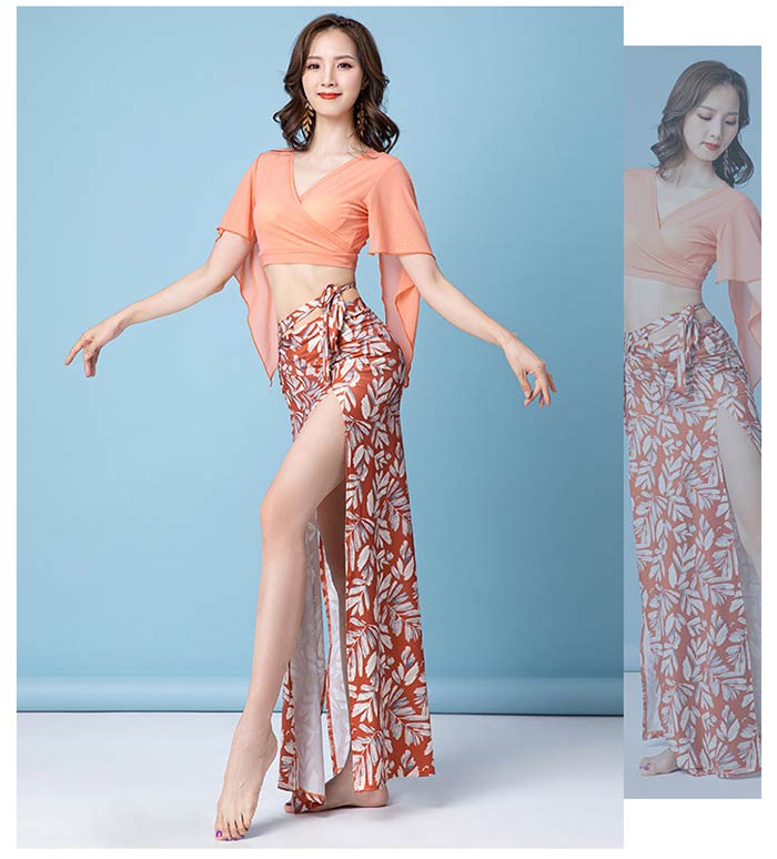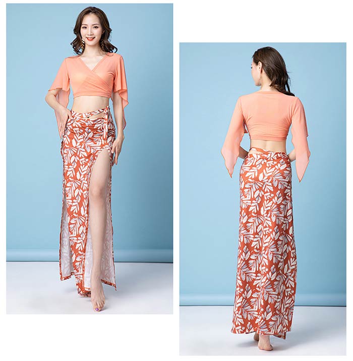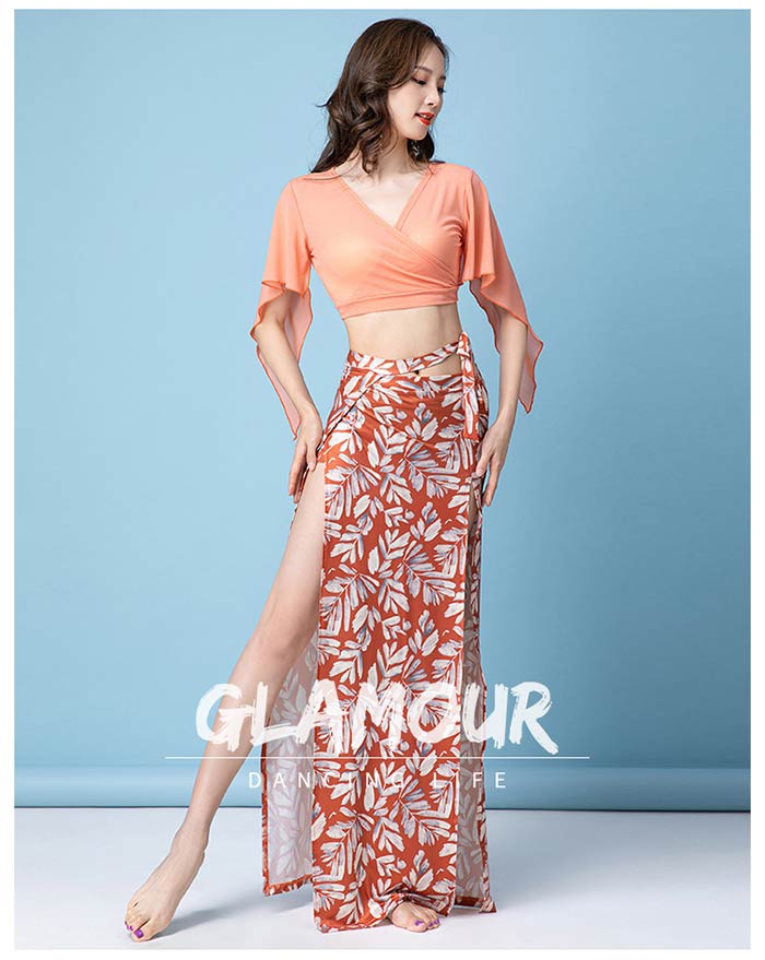 ベリーダンス 衣装 セットアップ Vネ スポーツ アウトドア 特集 M L XL オレンジ グリーン