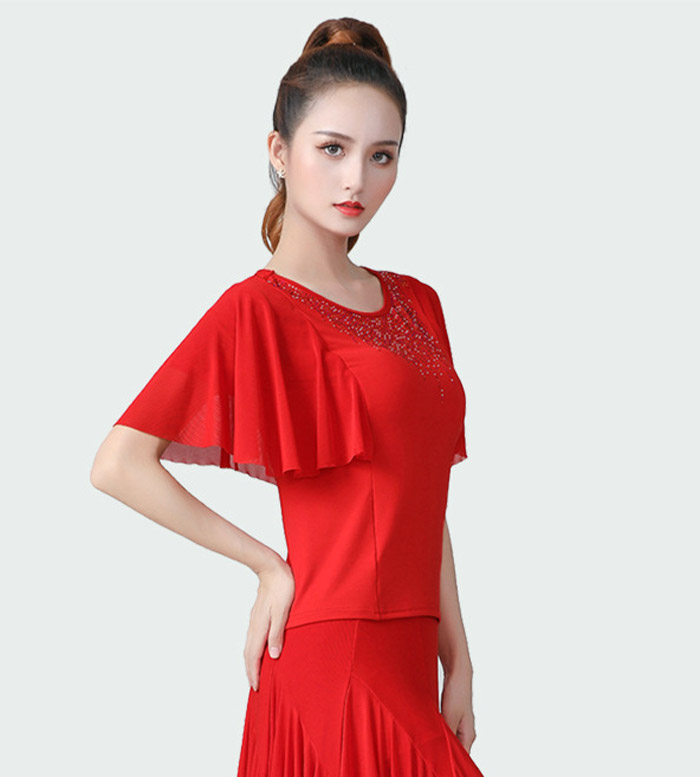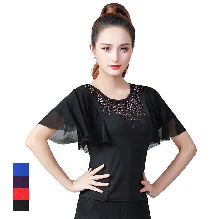 社交ダンス トップス フレア袖 半袖 体操 ダンス 社交ダンス ウェア 通販 レッド ブラック パープル ブルー M L XL XXL 3XL 4XL