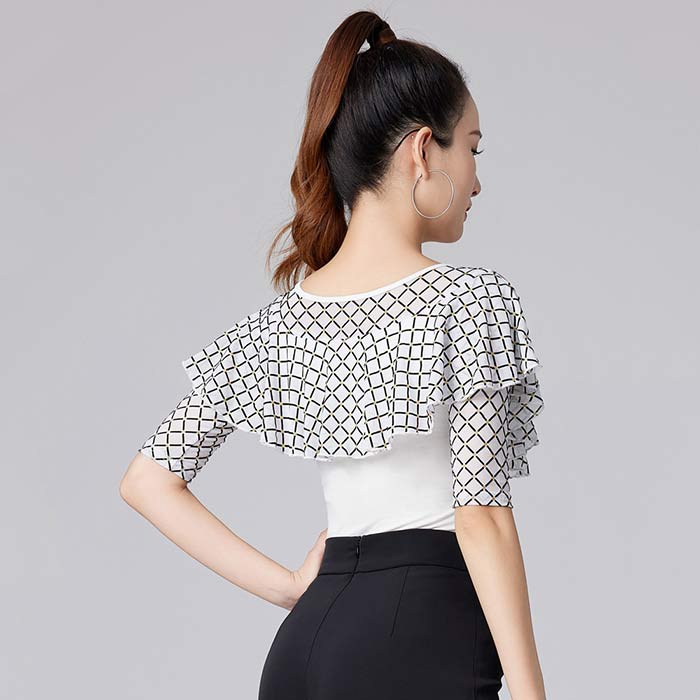 社交ダンス衣装 トップス 5分袖 フリ 体操 ダンス 社交ダンス ウェア 特集 ブラック ホワイト M L XL 2XL 3XL 4XL