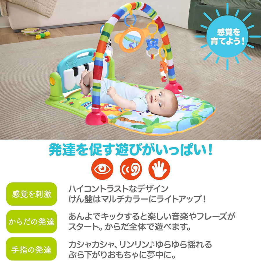 たまに人形が揺れているところを興味深そうに見ているので、赤ちゃんとしても暇つぶしになって良いと思いました。魚、パンダ、象のキャラクターが可愛いです。やっと目で追うようになり、タイミング的によかったです。ピアノ演奏を楽しめる!あんよでキックすると、楽しいラーニングがスタート!