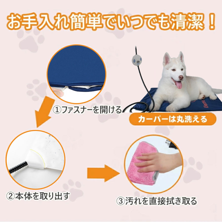 ペット用ヒーター ペット用 ホットカーペット 電気ヒーターマット 犬猫 中小大型 噛み付き防止 防水 過熱保護 カバー付き カバー取り外し可能 洗濯可能 秋冬 寒波 寒さ対策 省エネ ポカポカ防寒対策