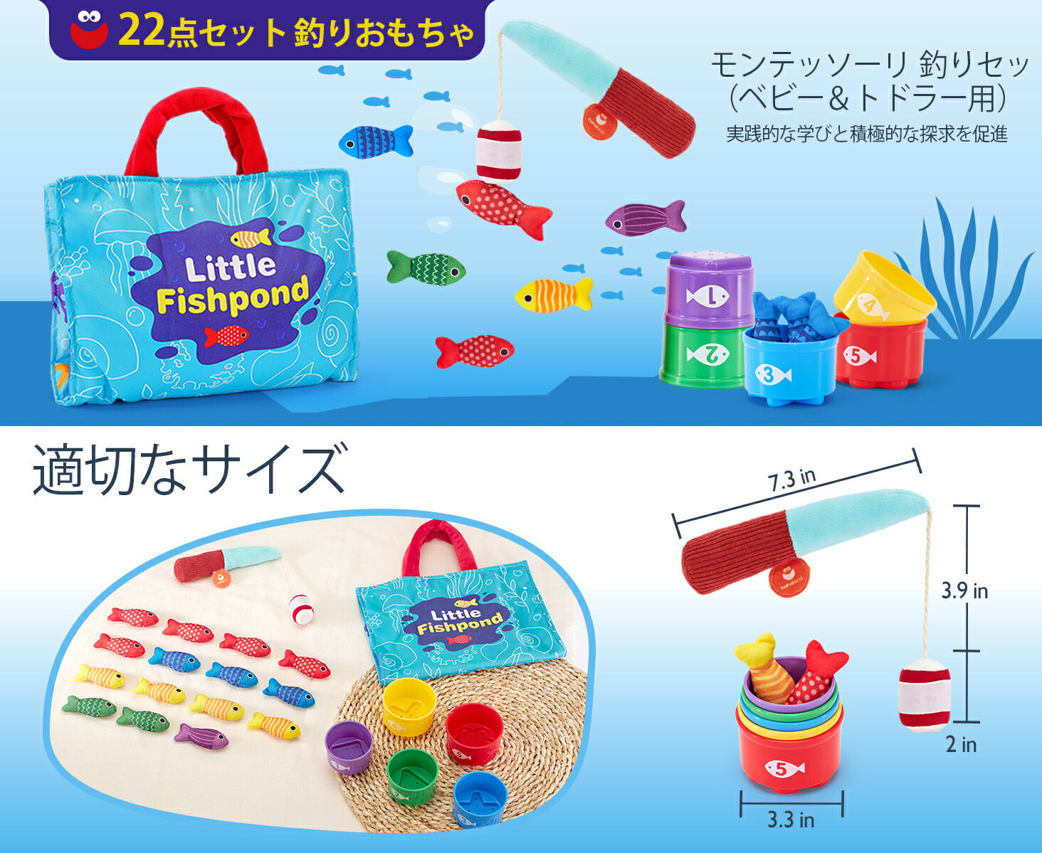この22点セットの釣りおもちゃは、生後6か月~3歳の幼児向けです。