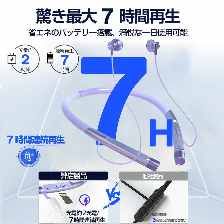 【7時間超長時間再生】大容量省電力バッテリーを採用されて、一回フル充電(2時間)で最大連続7時間通話/再生が可能です。1日中バッテリー残量を気にせず使用でき、通勤、通学、スポーツ、登山等の際に安心してご使用いただけます。