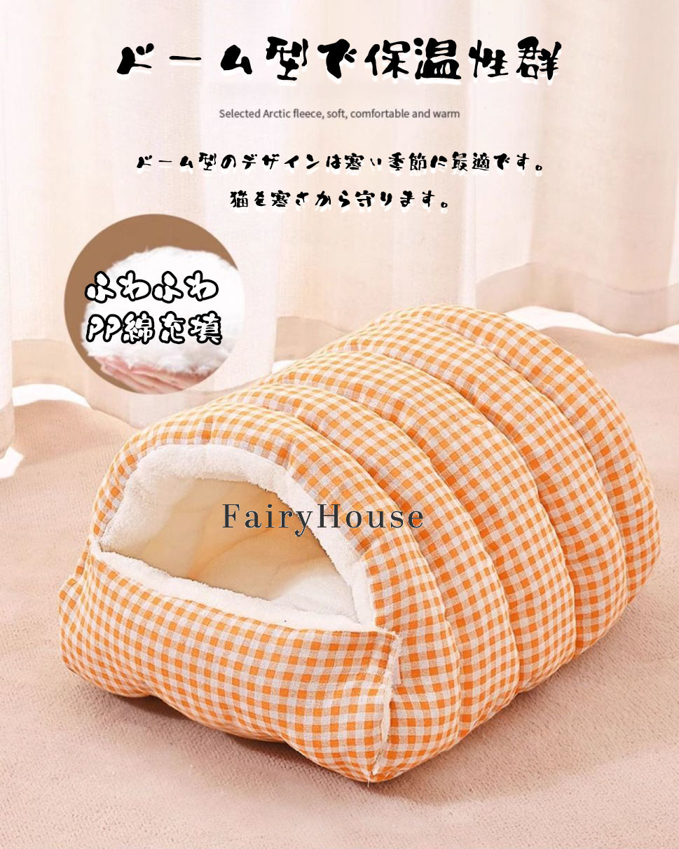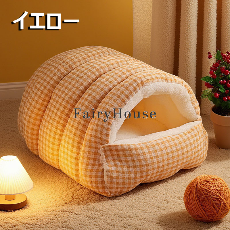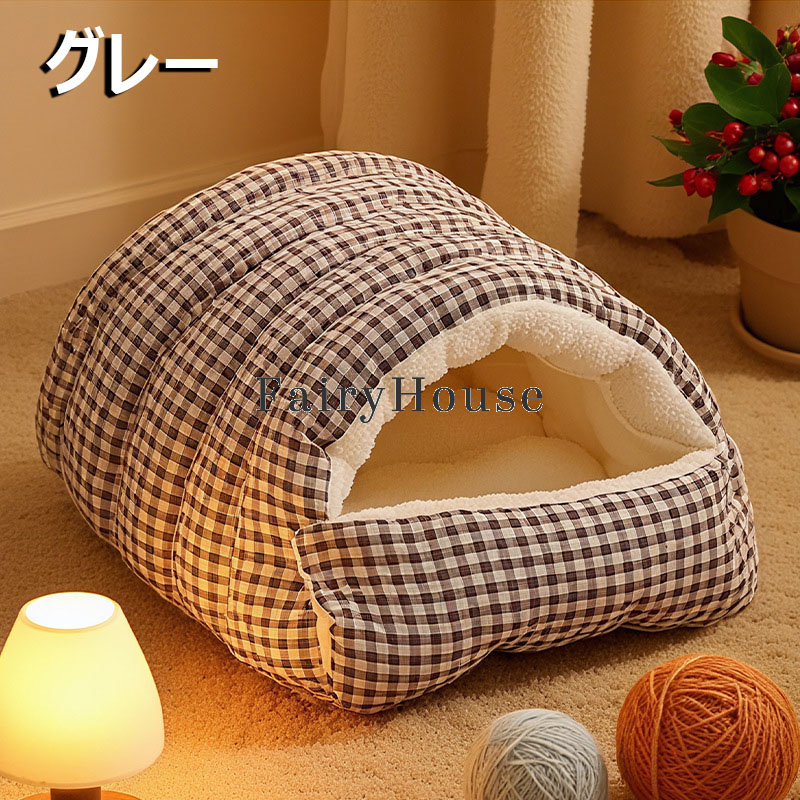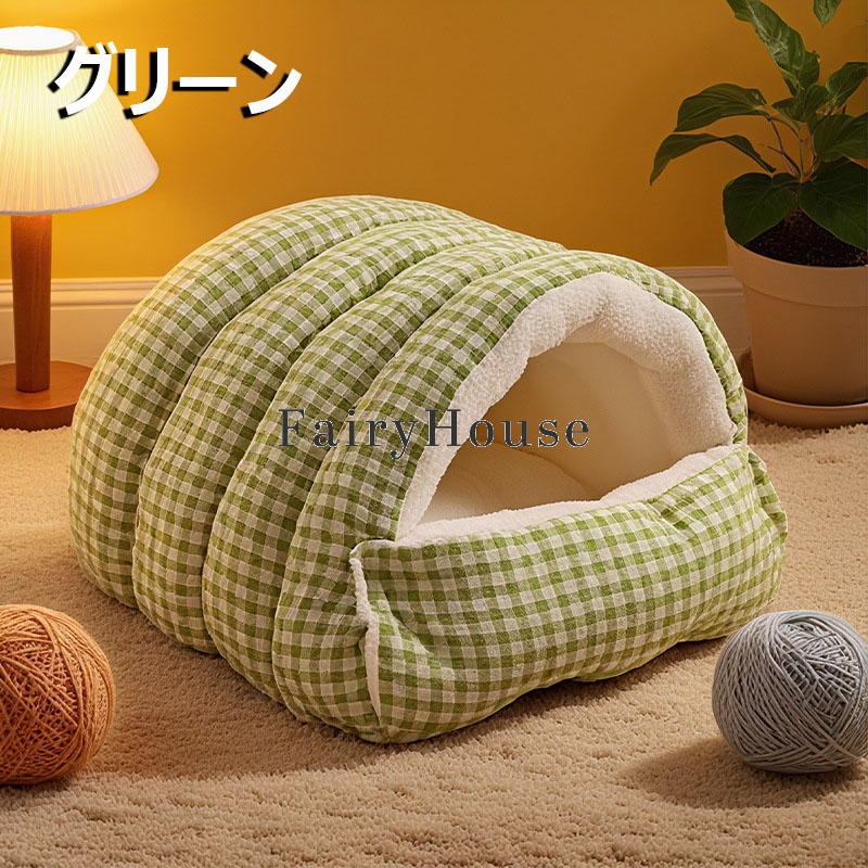 ペットベッド ドーム チェック柄 ペッ ペット ペットグッズ 人気 ブルー グリーン イエロー グレー 【31×30×20cm 約】 【42×40×28cm 約】