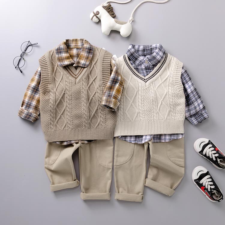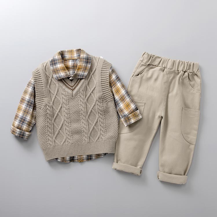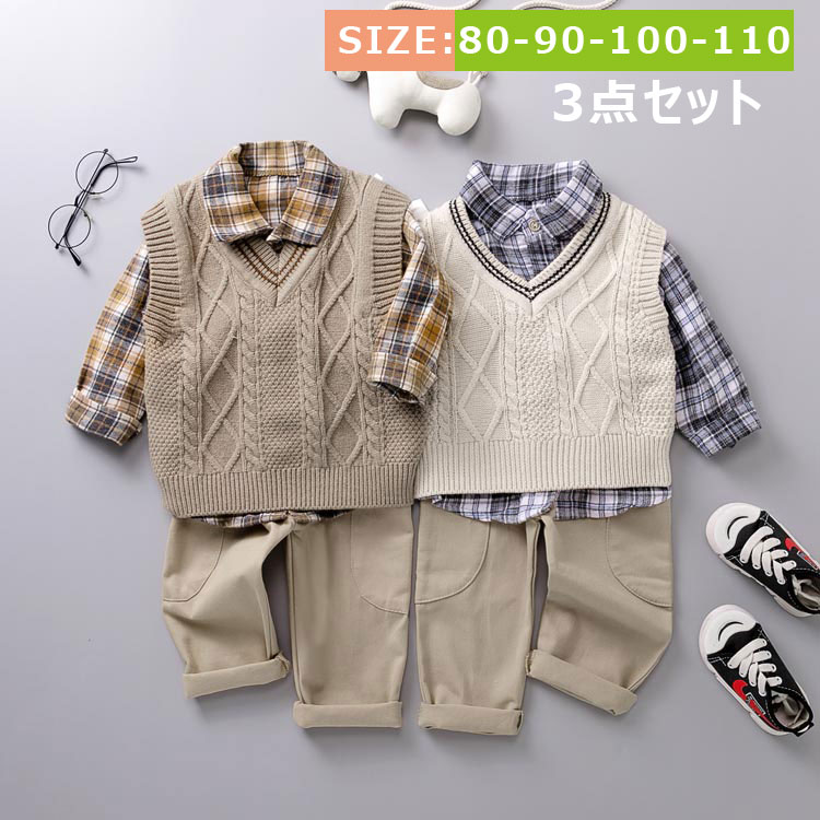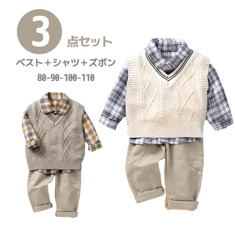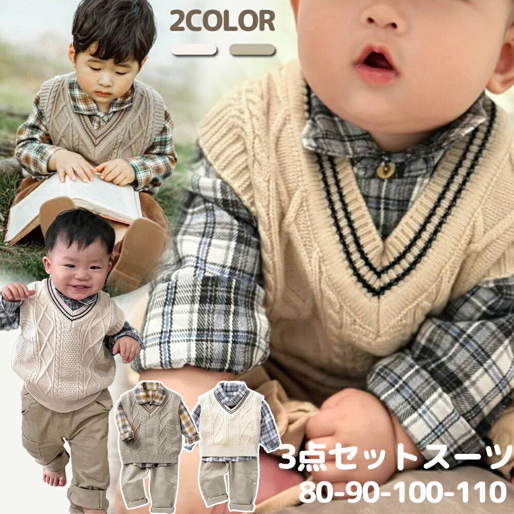 3点セット 子供 スーツ 男の子 フォ ベビー ベビー服 ファッション 上下セット セットアップ 早い者勝ち ブラウン ベージユ 80 90 100 110