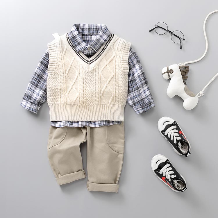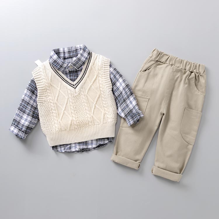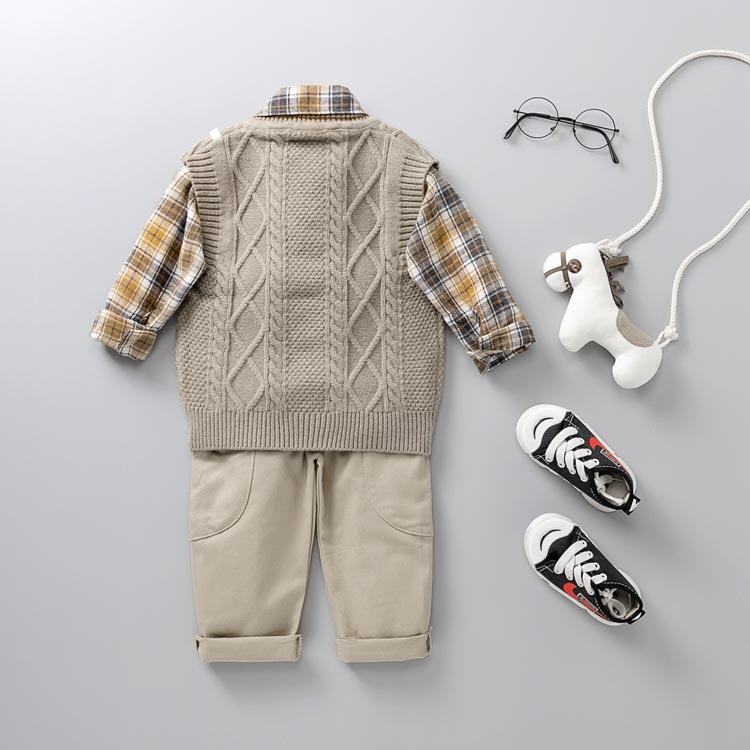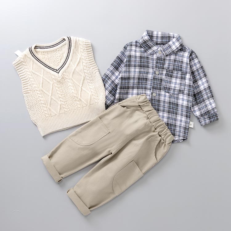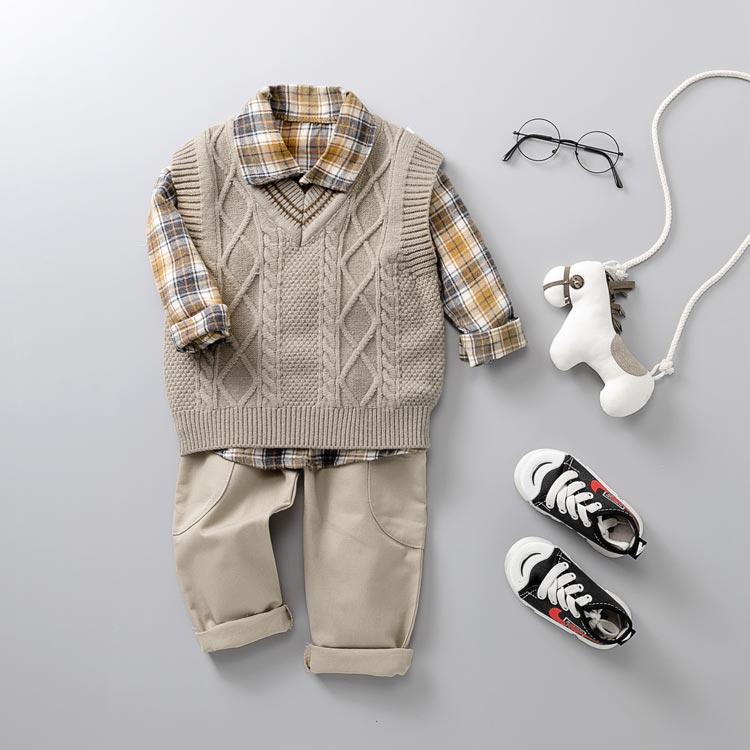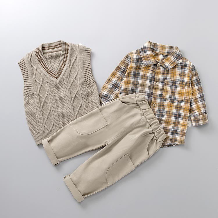 3点セット 子供 スーツ 男の子 フォ ベビー ベビー服 ファッション 上下セット セットアップ 早い者勝ち ブラウン ベージユ 80 90 100 110