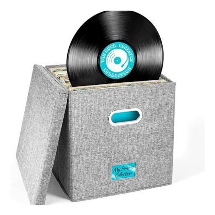 70枚収納 蓋付き 収納ボックス レコ グレー(布製) ブラック(布製) ブラック(レザー製)