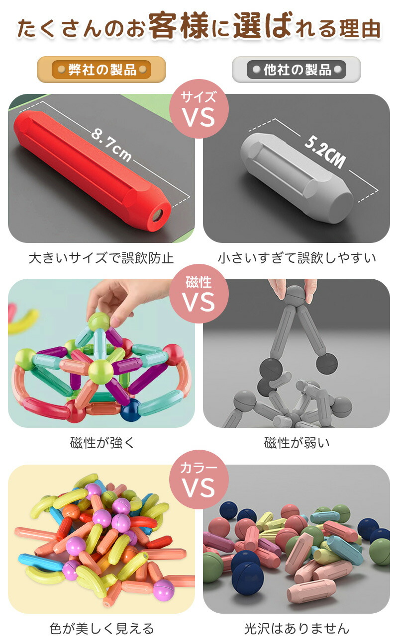 しっかりとした磁力を持ちながら、幼児の玩具として、