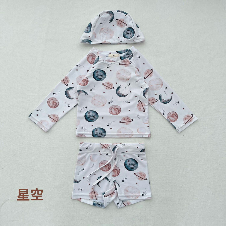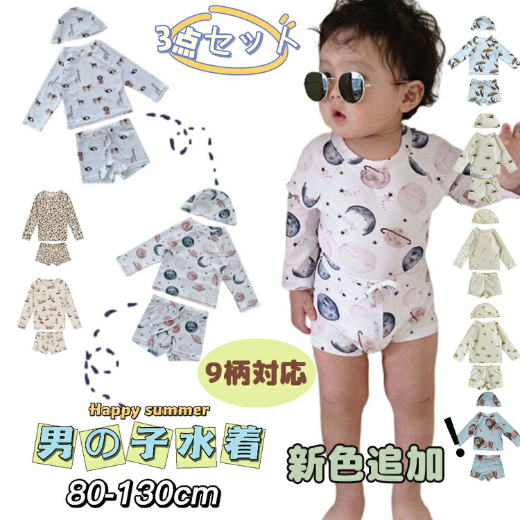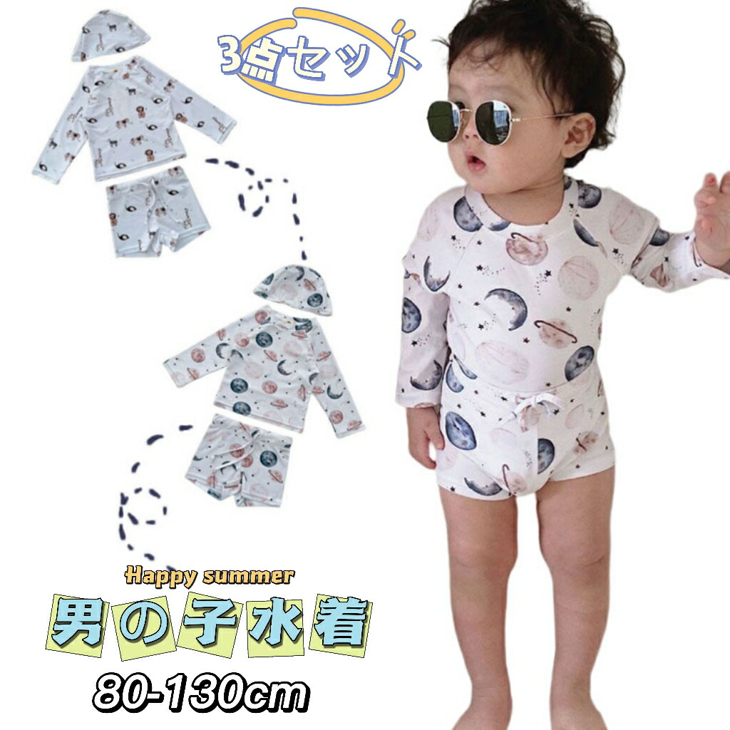 3点セット 男の子 みずぎ 上下セット キッズ ベビー マタニティ 新登場! 星空 動物 太陽 レモン ライオン パンダ 恐竜楽園 船 80 90 100 110