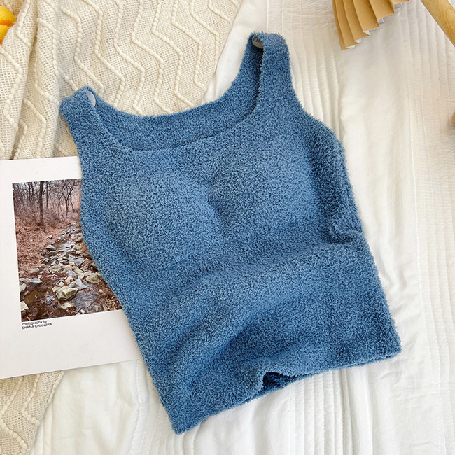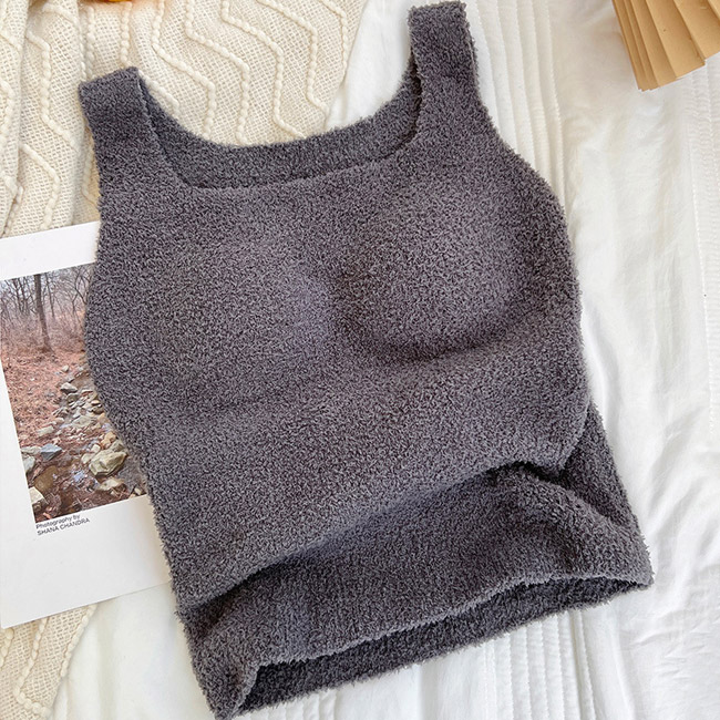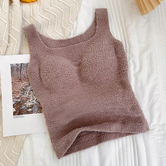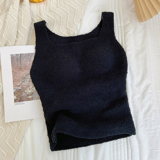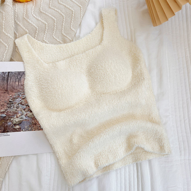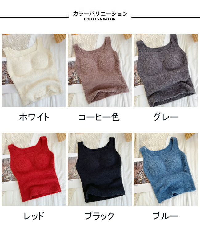 ボアインナー ノンワイヤー カップ付き トップス タンクトップ 豊富 M L ホワイト コーヒー色 グレー レッド ブラック ブルー