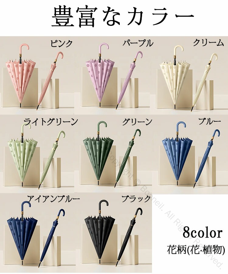 16本骨 花柄 長傘 大きい 大きめ バッグ 小物 ブランド雑貨 豊富 ピンク パープル クリーム ライトグリーン グリーン ブルー アイアンブルー ブラック