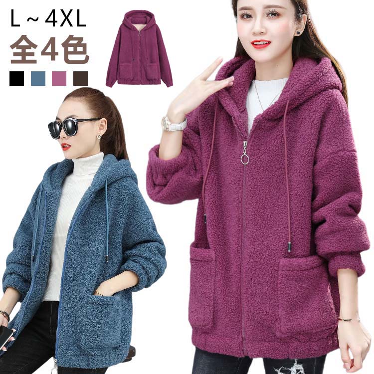 ボアパーカー フード付き ジップアップ コート ジャケット 豊富な品揃え コーヒー パープル ブルー ブラック L XL 2XL 3XL 4XL