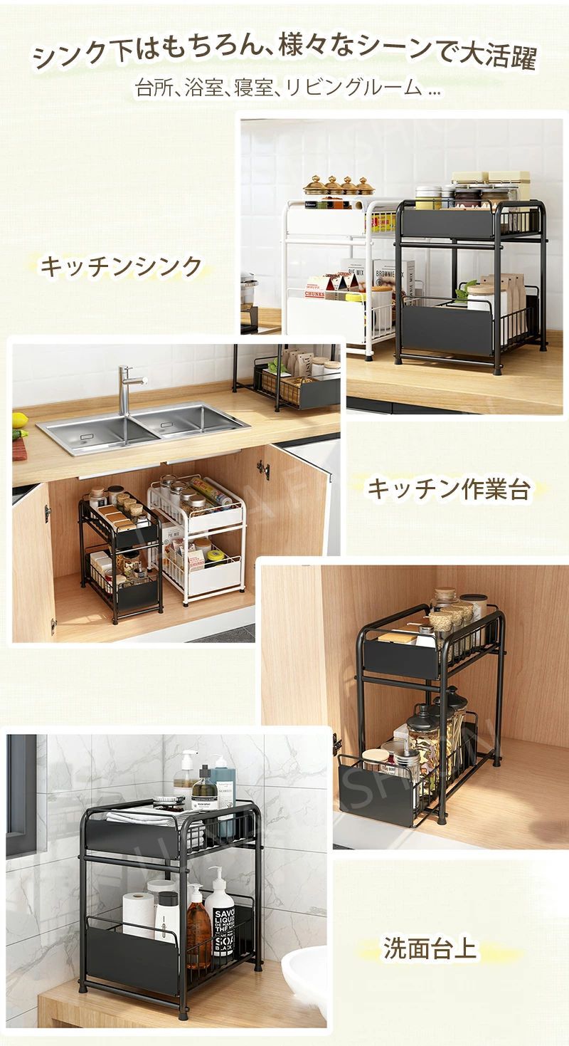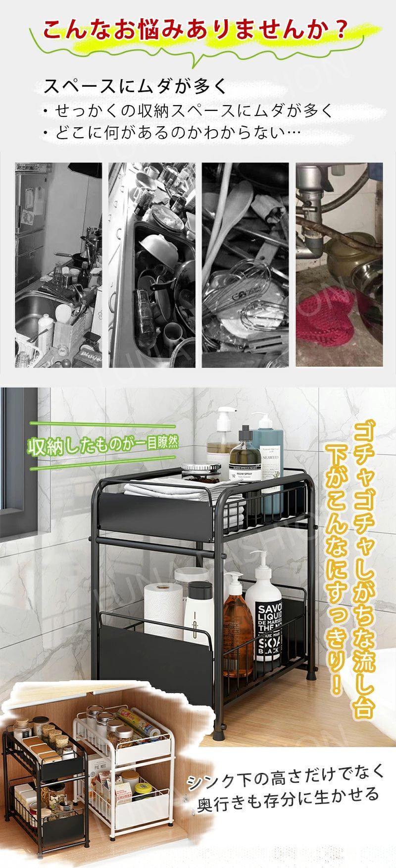 スライドラック シンク下収納 スライド ホワイト ブラック S M L XL