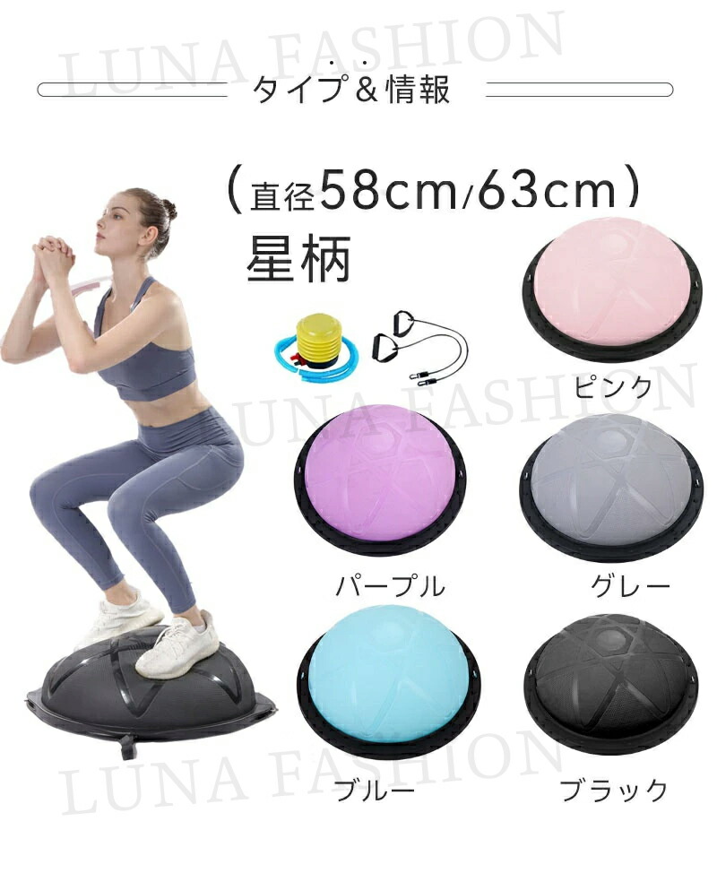 =バランスボール 半円型 半球 ヨガボ 星柄 横柄 花柄 マッサージスポット付 ブラック ブルー パープル グレー ローズ ピンク