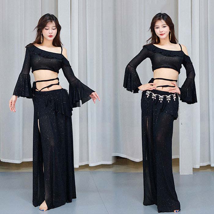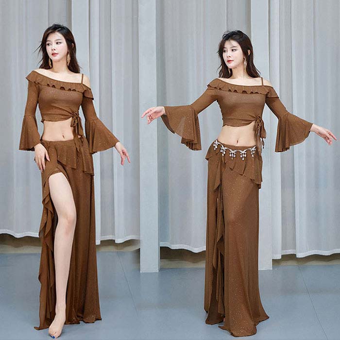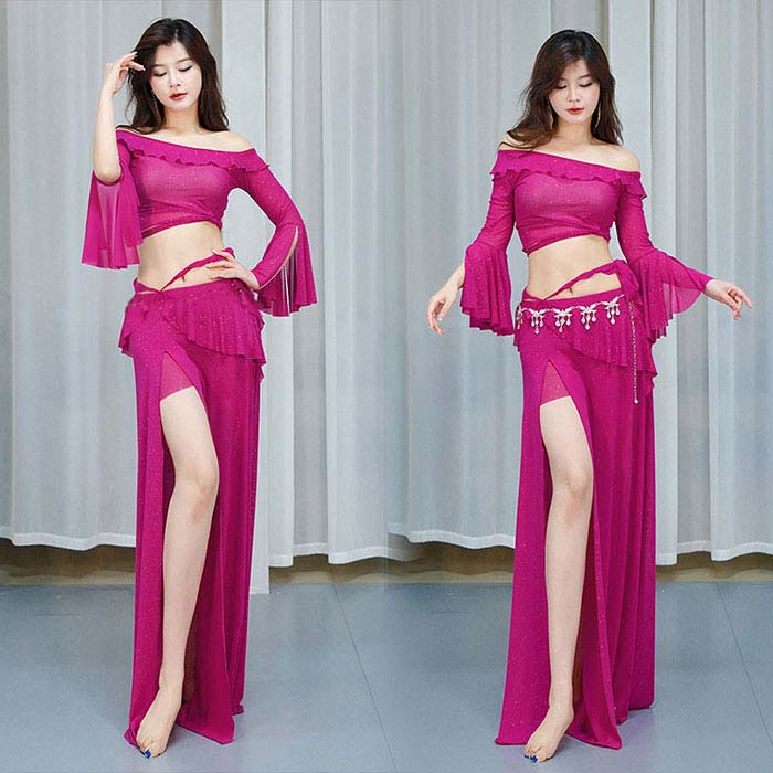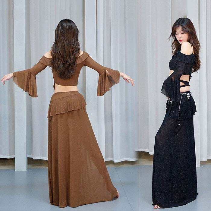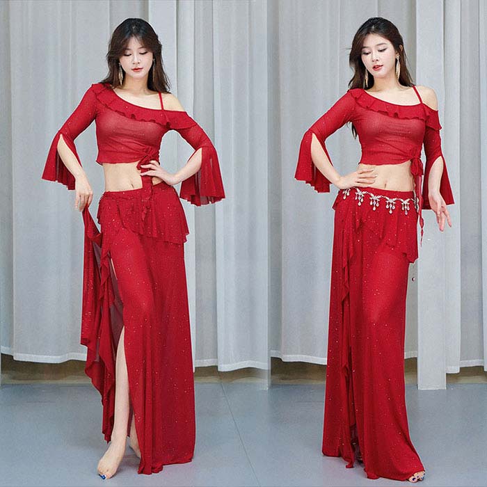 ベリーダンス セットアップ 新作 レデ 体操 ダンス ベリーダンス 衣装セット 通販 レッド パープルレッド ブラック ブラウン トップス+スカート トップス+スカート+チェーンベルト