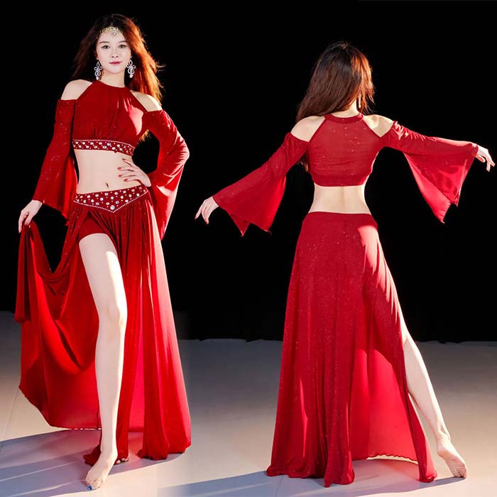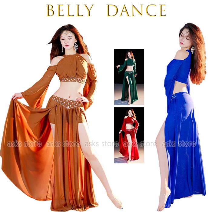ベリーダンス衣装 競技着 練功服 上下 体操 ダンス ベリーダンス 衣装セット 特集 レッド ブラウン グリーン ブルー M L XL