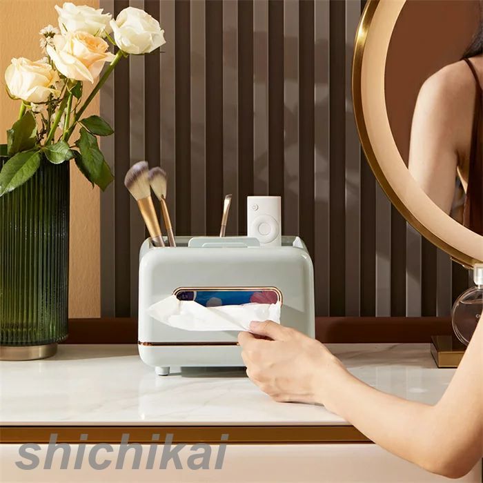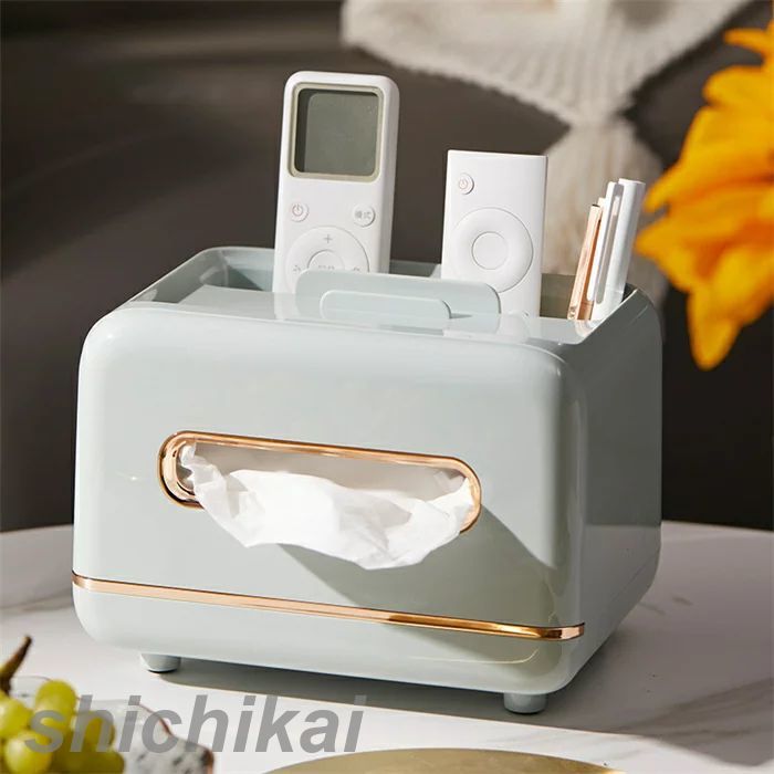 ティッシュケース 多機能 卓上 リモコ ホワイト ライトグリーン ダークグリーン