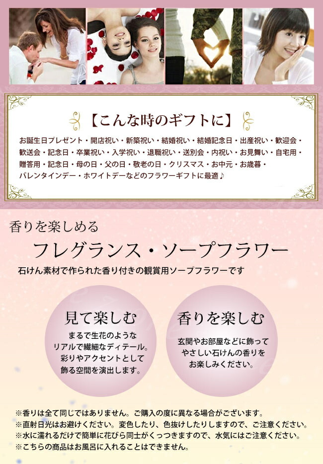 【このようなイベントにお使い頂けます】 誕生日 母の日 クリスマスプレゼント 敬老の日 バレンタインデー ホワイトデー 父の日 プレゼント 誕生日プレゼント 結婚祝い 出産祝い フラワーギフト お祝い 結婚記念日 古希 喜寿 米寿 還暦祝い お礼 引越し祝い 結婚式 新築祝い 開業祝い 開店祝い 記念日 改築祝い 発表会 金婚式 銀婚式 贈り物 退職 送別 粗品 景品 入学 卒業 内祝い 卒業式 卒業祝い 卒園祝い