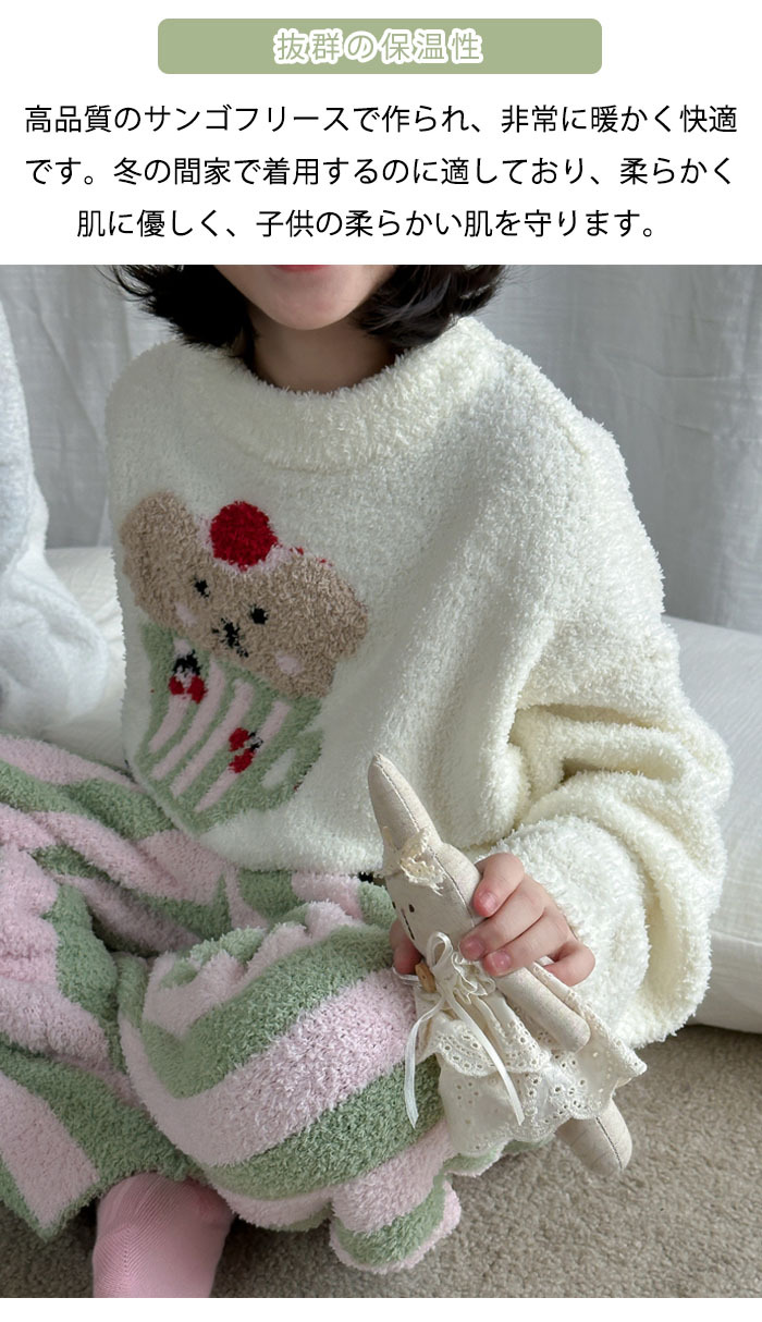 商品名:子供パジャマ ルームウェア 子供 パジャマセット 2点セット セットアップ キッズ男女兼用 もこもこ ふわふわ 春秋冬 厚手 長袖 部屋着 室内 女の子 男の子 柔らかい おしゃれ ゆったり 可愛い 小学校 保育園 幼稚園 ファッション