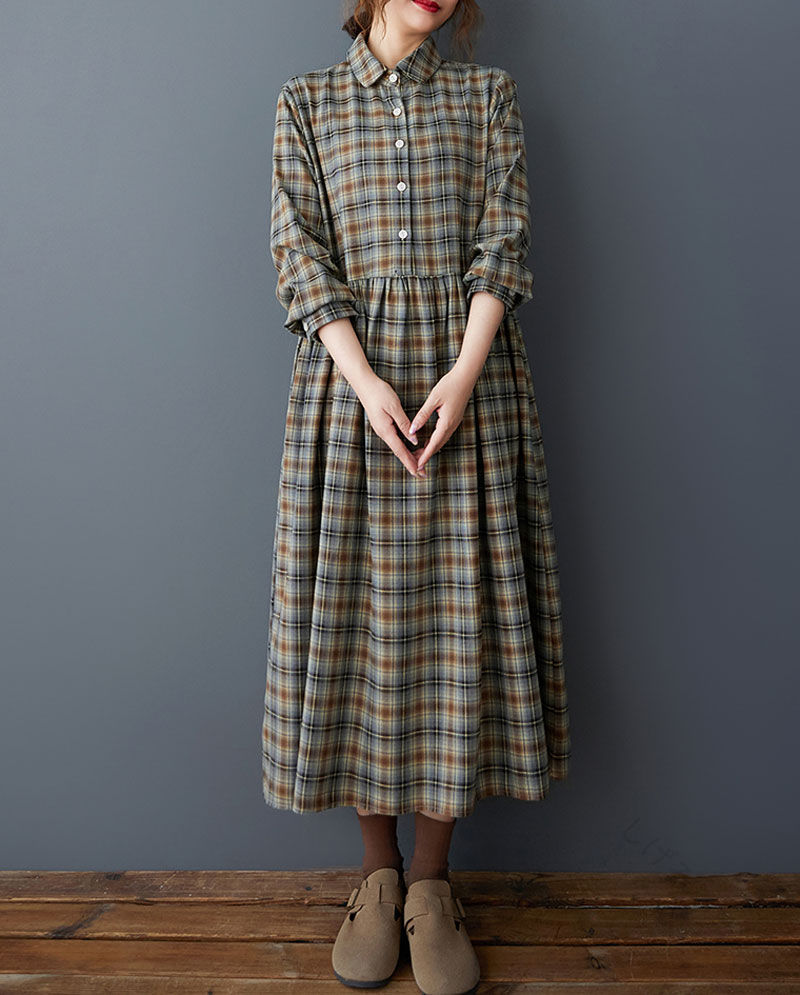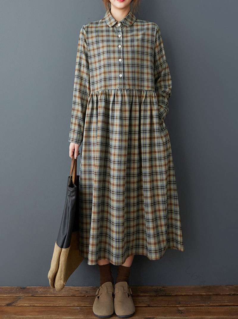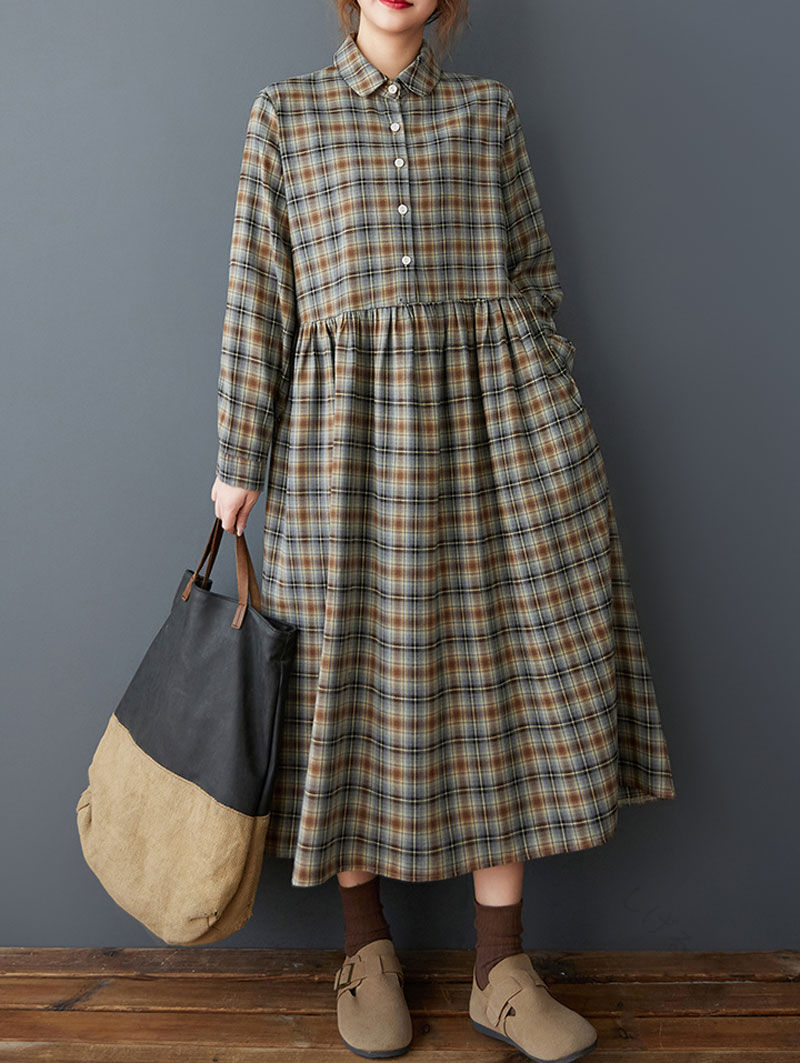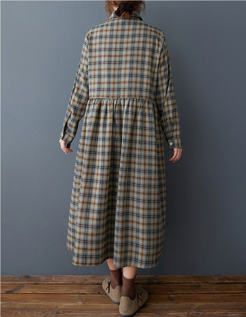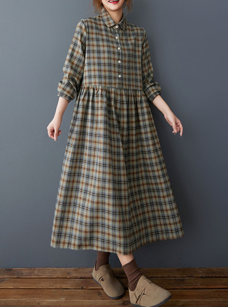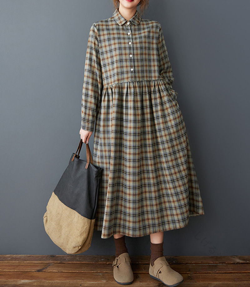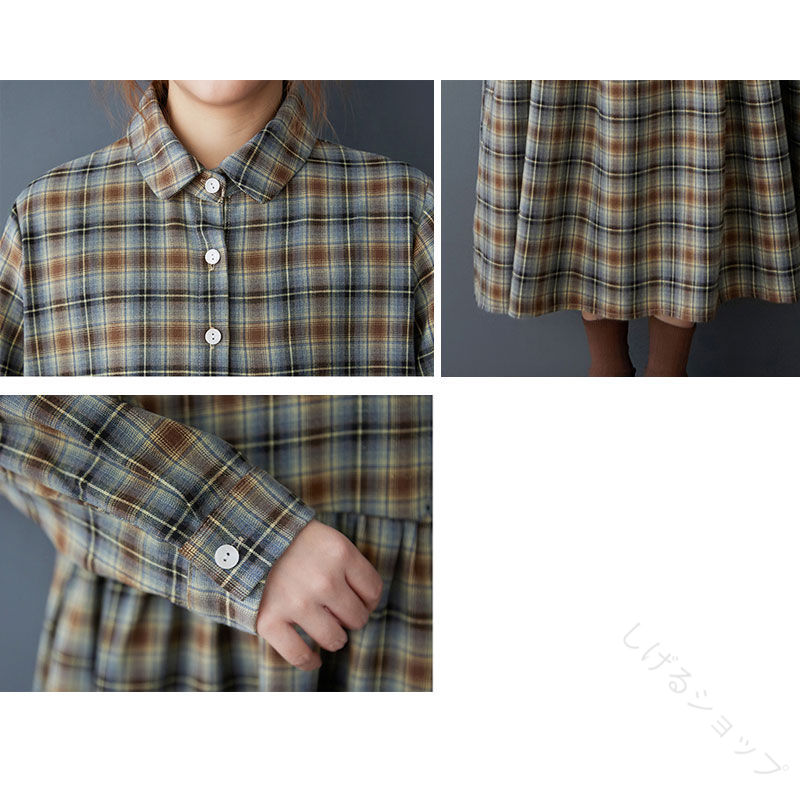 シャツワンピース チェック柄 秋冬 レ M L XL 2XL