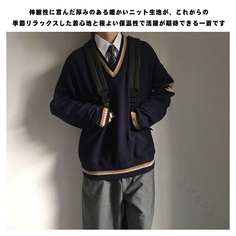 スクールセーター Vネック ニット メ トップス ニット セーター 早い者勝ち カーキ ネイビー M L XL 2XL