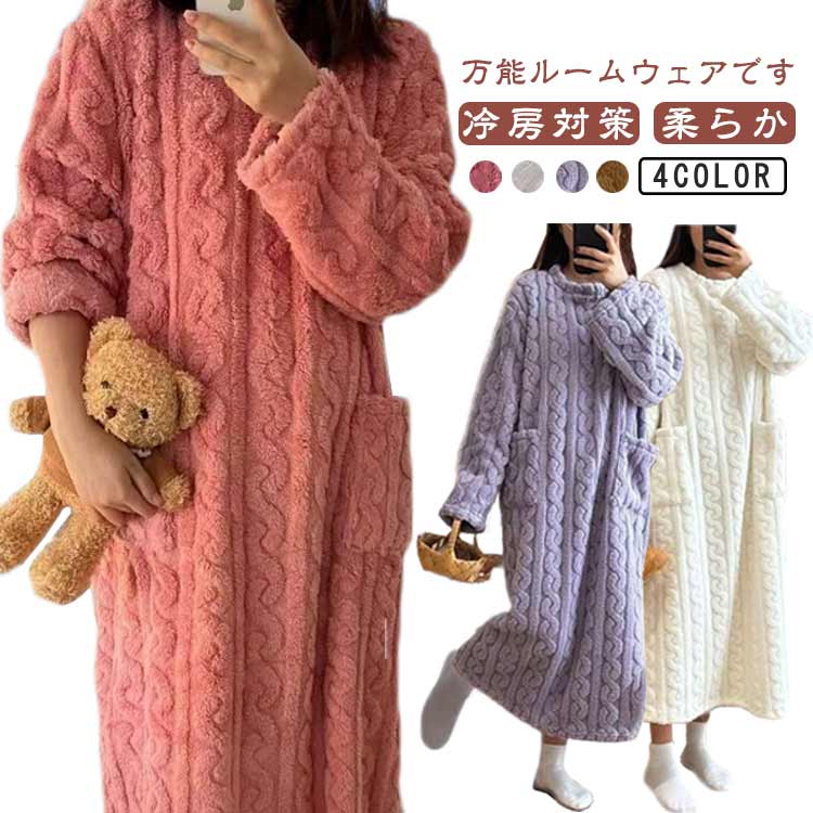 裏起毛ワンピースレディースパジャマ長袖秋冬マキシワンピース