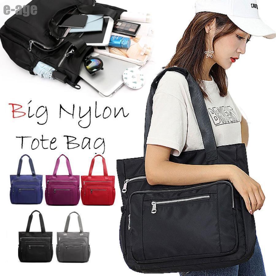 トートバッグ レディース 大容量 撥水 大きめ 大きい ナイロン マザーズバッグ 手提げ おしゃれ 軽量 ファスナー ポケット 収納力 無地 軽い 通勤 通学 4入る