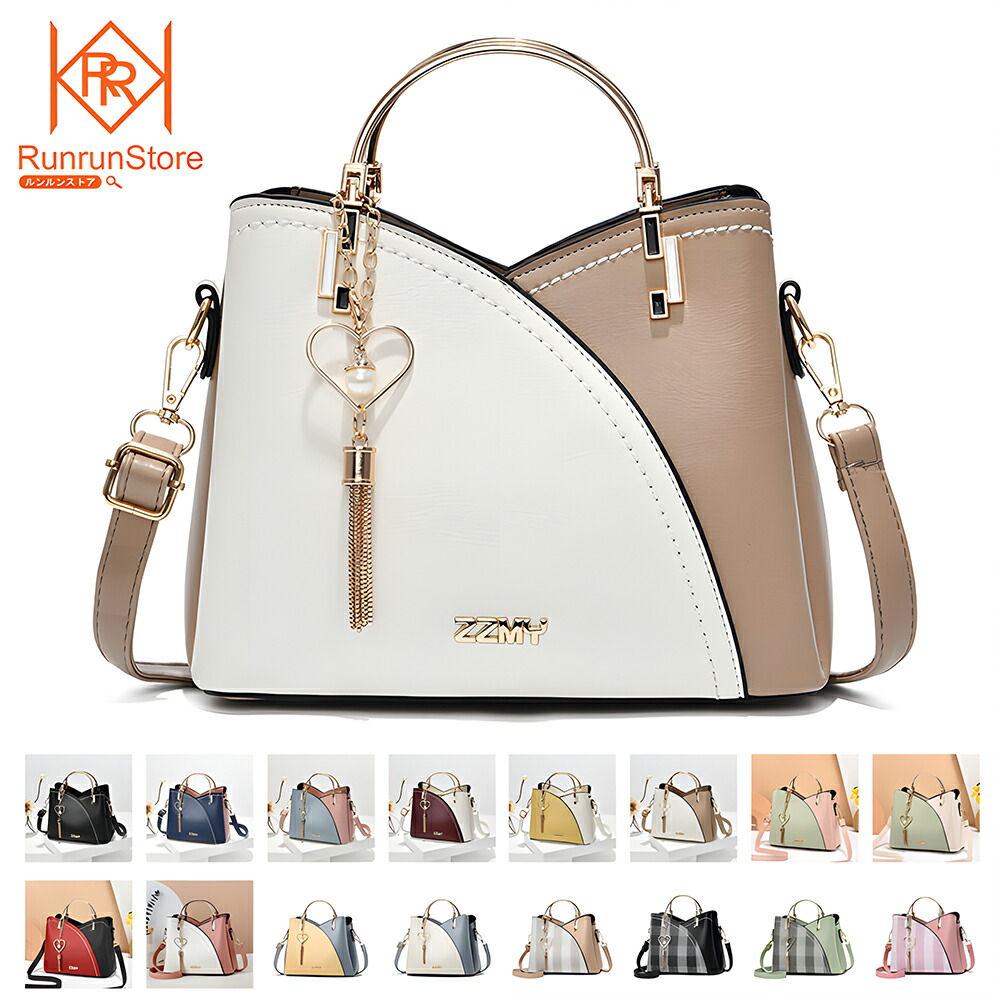 バイカラー 3仕切り 2way 大容量 レディース バッグ カバン ファスナー付き おしゃれ 大きい 大きめ 横型 縦型 可愛い レザー 通勤 PU 鞄 ハンドバッグ 肩掛けショルダー かばん