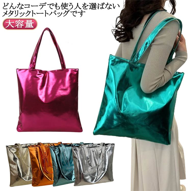 トートバッグ 肩掛けバッグ 軽量 大容量 手提げ ハンドバッグ 2way レディース 光沢感 キラキラ カバン ファスナー開閉 可愛い 軽い お洒落 通学 韓国ファッション 高見え 通勤