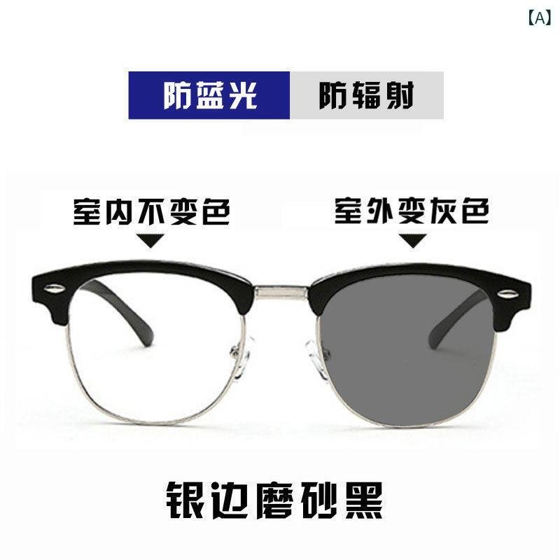 サングラス メンズ 調光 近視対応 レトロ ハーフフレーム ブロウライン アウトドア 釣り用 カット スポーツ 偏光レンズ 耐久性 軽量