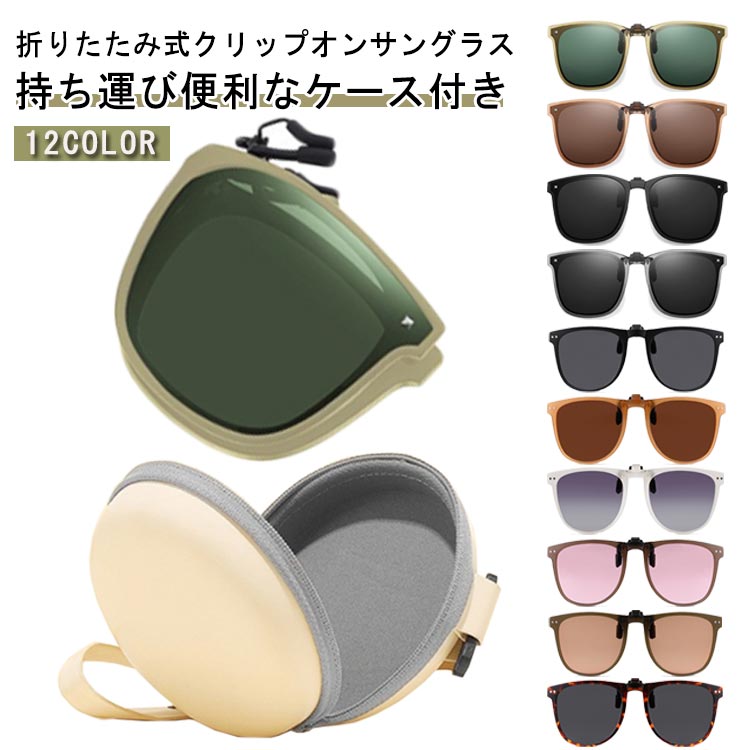 送料無料 クリップオンサングラス 折りたたみ クリップサングラス 偏光 サングラス 持ち運び便利なケース付き クリップオングラス 跳ね上げ式 跳ね上げ式サングラス 鏡につけるサングラス