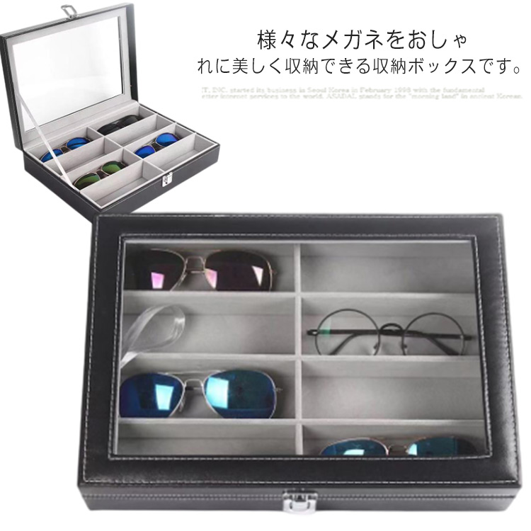 メガネ収納ボックス サングラス収納ケース 8本収納 コレクションボックス PUレザー おしゃれ ガラス めがね 眼鏡 アクセサリー 小物 化粧品 収納整理 ジュエリー収納