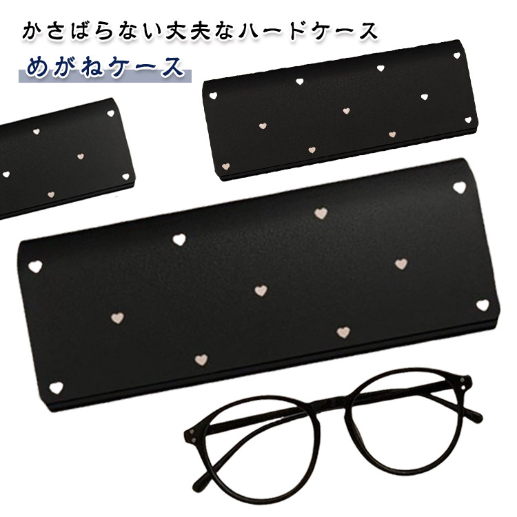 ハート柄 可愛い ハード 眼鏡ケース PU レディース めがねケース レザー 紛失防止 キズ防止 ハードケース 軽い かわいい 丈夫 コンパクト マグネット 高校生 女性 プレゼン 学生