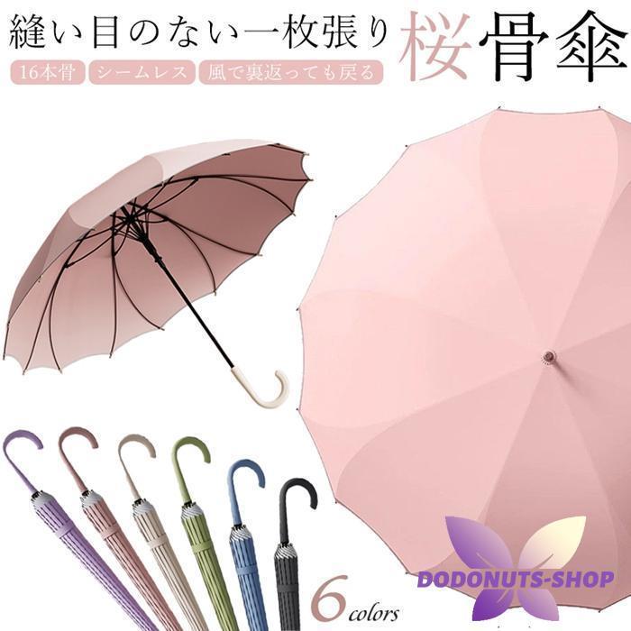 一枚張り 長傘 シームレス 16本骨 レディース おしゃれ ジャンプ式 風で裏返っても戻る 耐風 桜骨 グラスファイバー 丈夫 風に強い さくら 雨傘