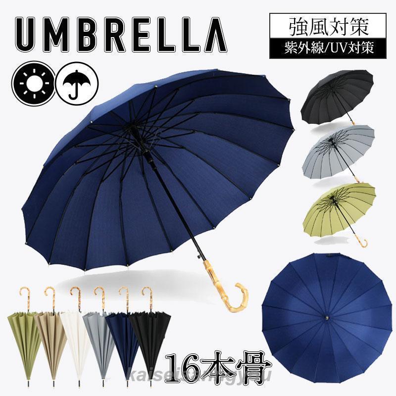長傘 16本骨 傘 雨傘 完全遮光 晴雨兼用 レディース メンズ 男女兼用 長柄 耐風 頑丈 ジャンプ式 軽量 おしゃれ 上品 プレゼント 梅雨