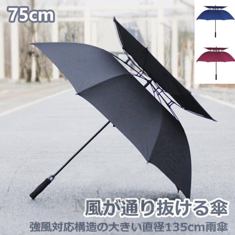 風が抜ける傘大きい雨傘 直径135cm2重構造 紳士傘 風に強い 強風に耐える傘強風対応構造の傘 男性用 雨傘 75cm x8 メンズ