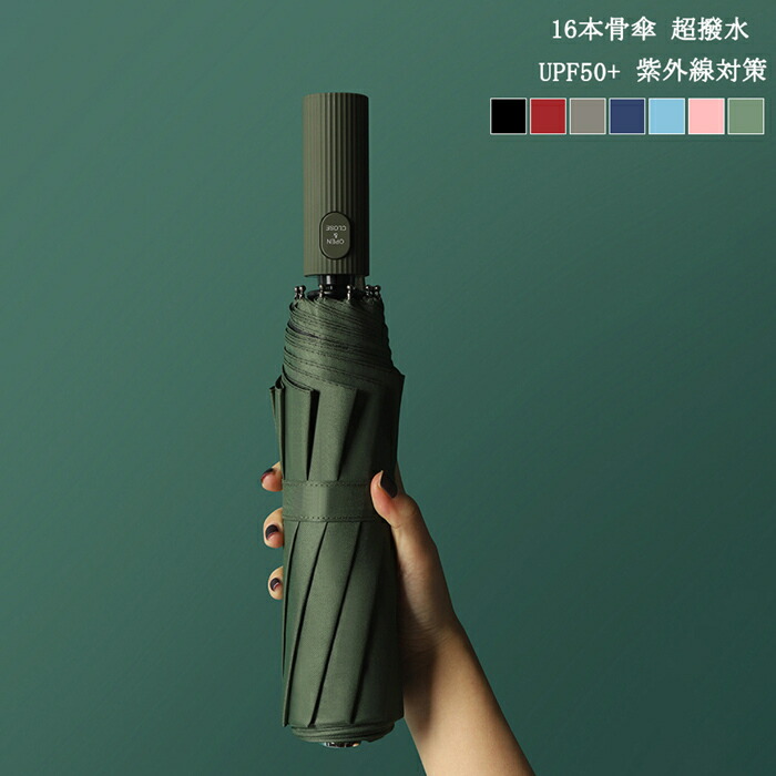 晴雨兼用で風に強い16本骨の軽量長傘 ワンタッチ自動開閉で丈夫 超撥水加工付きで通勤通学やギフトに最適